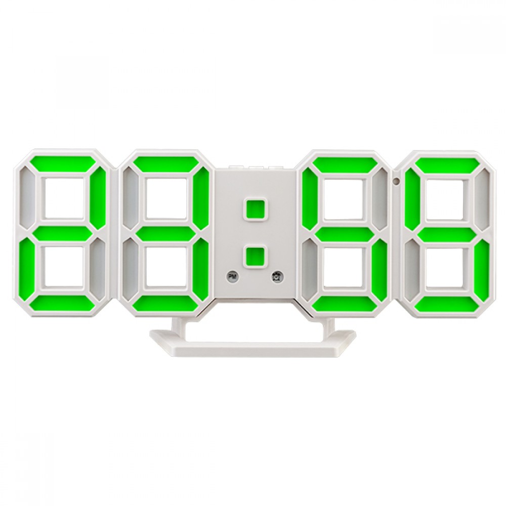 Часы-будильник Perfeo LED Luminous 2, белый корпус / зелёная подсветка (PF-6111)