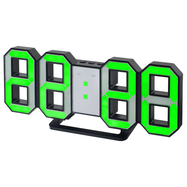 Часы-будильник Perfeo LED Luminous, черный корпус / зелёная подсветка (PF-663)