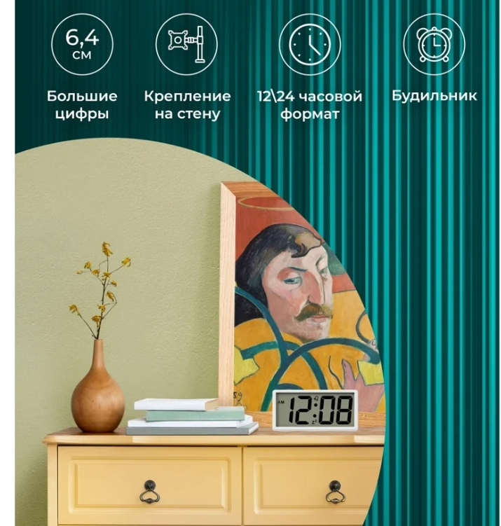 У часов крупные и четкие цифры (высота цифр 6,4 см).