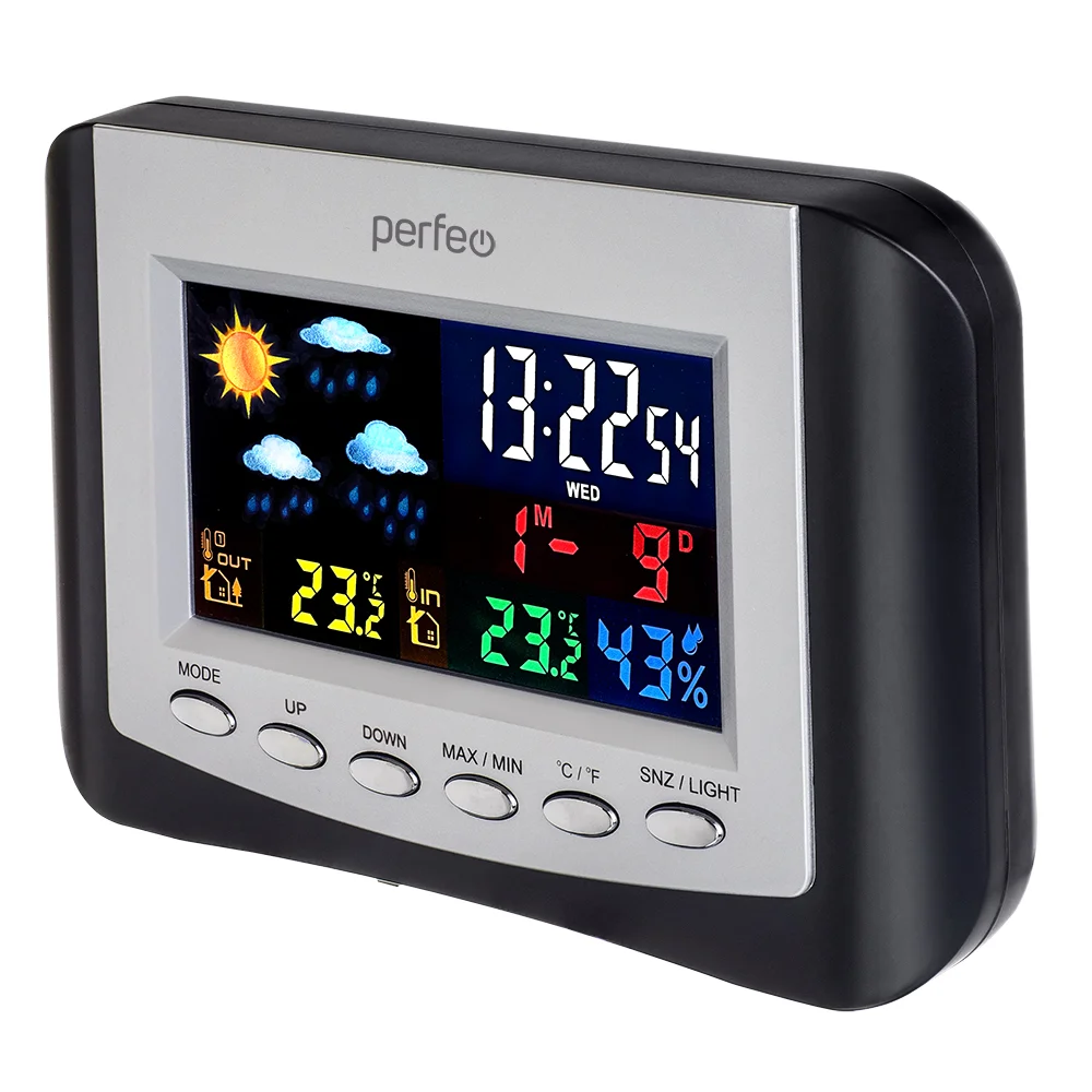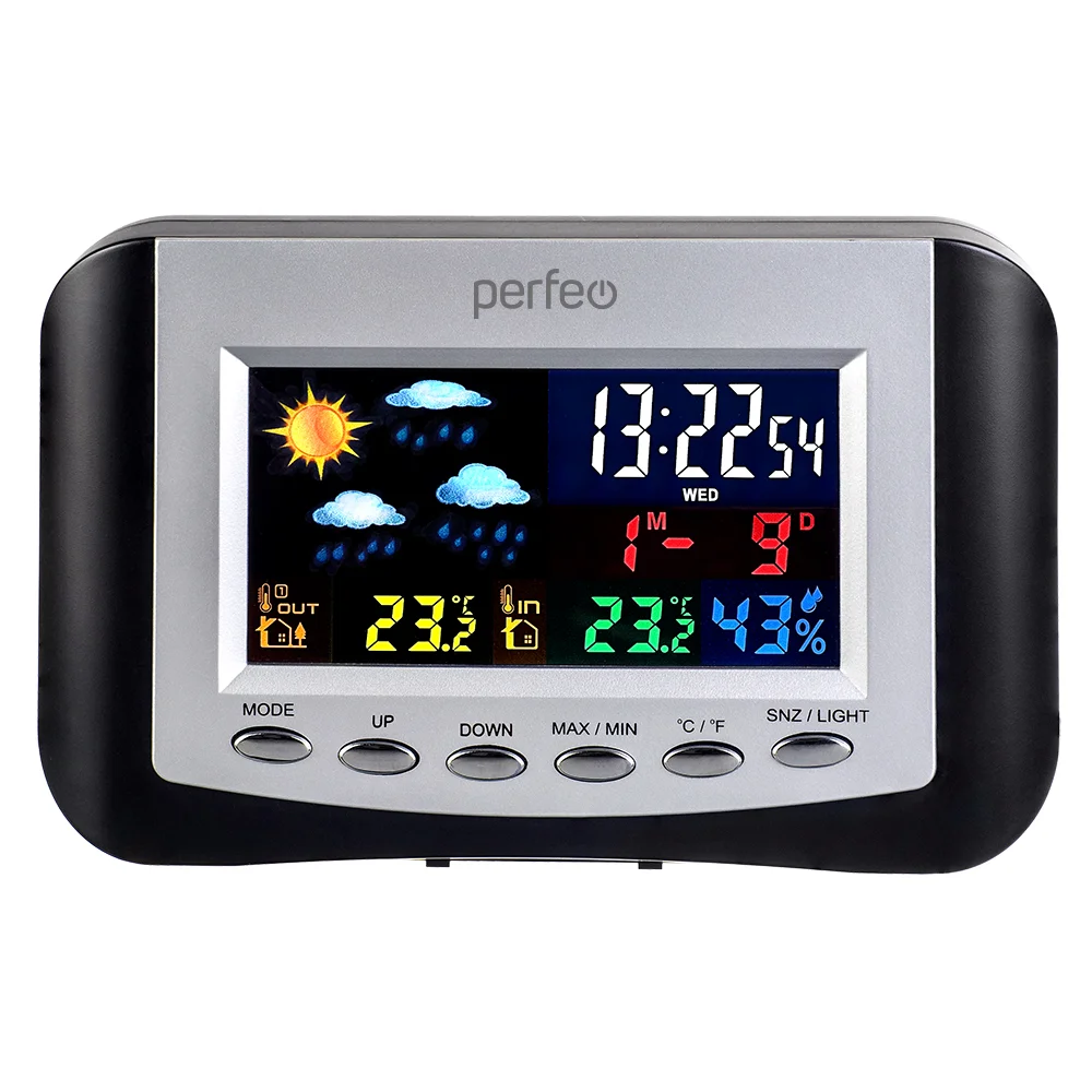 Цветной с одновременным отображением времени, две температуры, влажности и даты