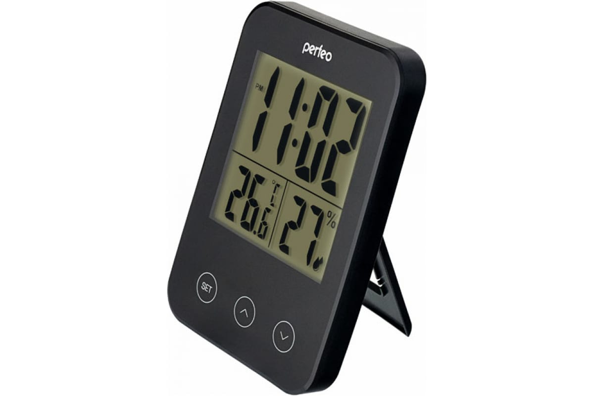 Часы-метеостанция PERFEO Touch PF-S681 черный 30 013 227 измеряют относительную влажность воздуха и температуру в помещении.