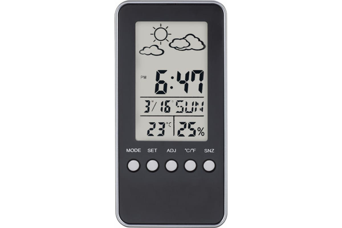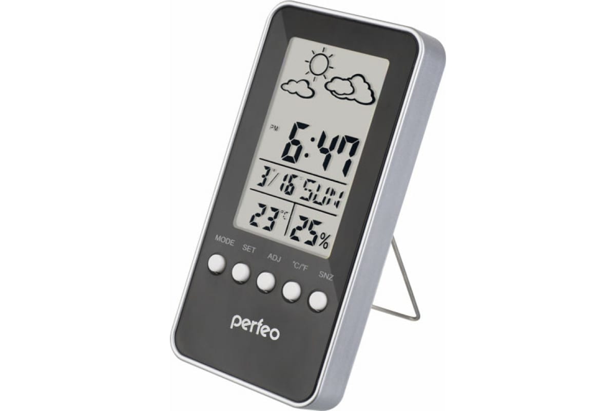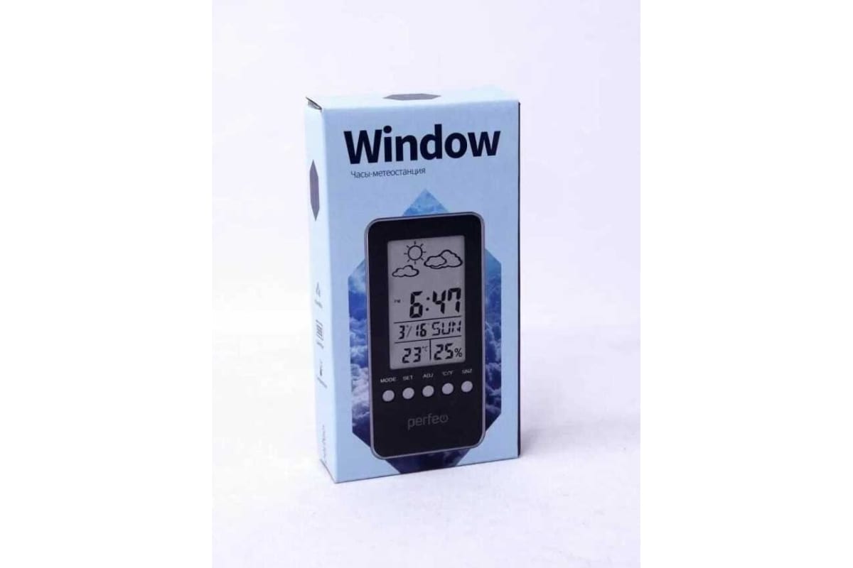 Часы-метеостанция PERFEO Window PF-S002A черный 30 013 229 измеряют относительную влажность воздуха и температуру, отображает время и дату. Также предусмотрен встроенный будильник с функцией поворота.