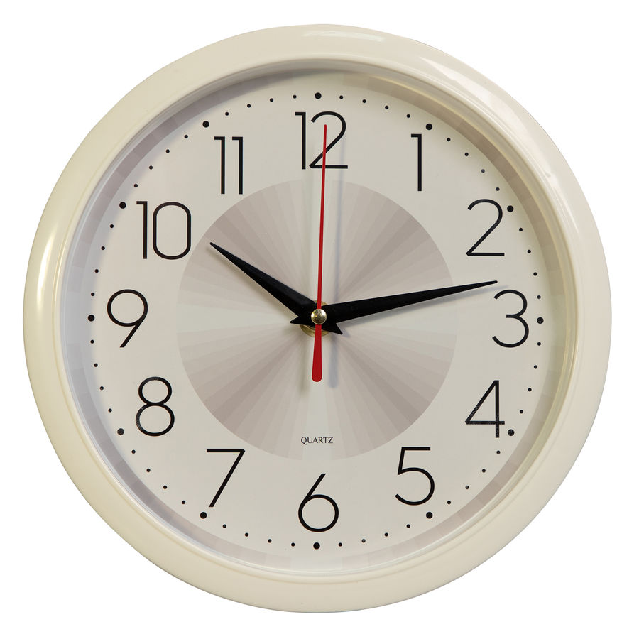тип циферблата аналоговые; арабские цифры; рамка пластик; диаметр 22см