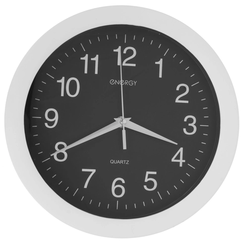 Часы настенные будут эффектно смотреться на фоне любых по цвету обоев. В отличие от большинства моделей данное устройство имеет белые цифры и стрелки на черном фоне. Большие арабские цифры хорошо видны издалека, а кварцевый механизм с плавным ходом стрелок гарантирует высокую точность работы.