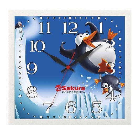 Часы настенные SAKURA ПЕ-А8 Веселые пингвины мрамор