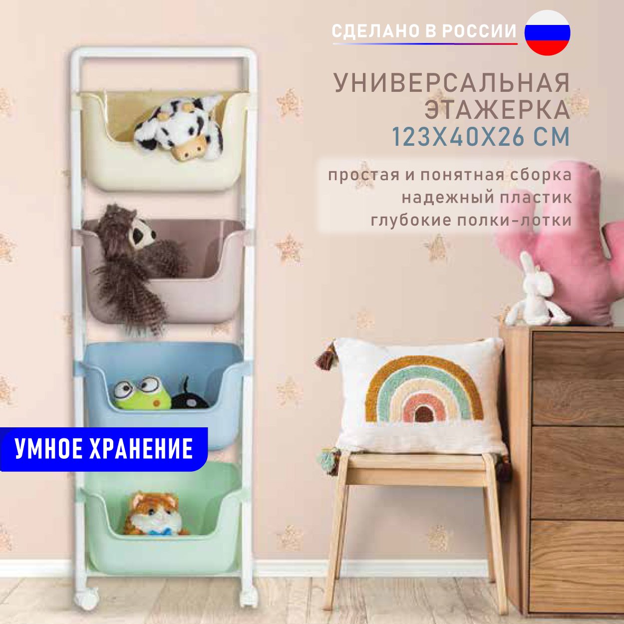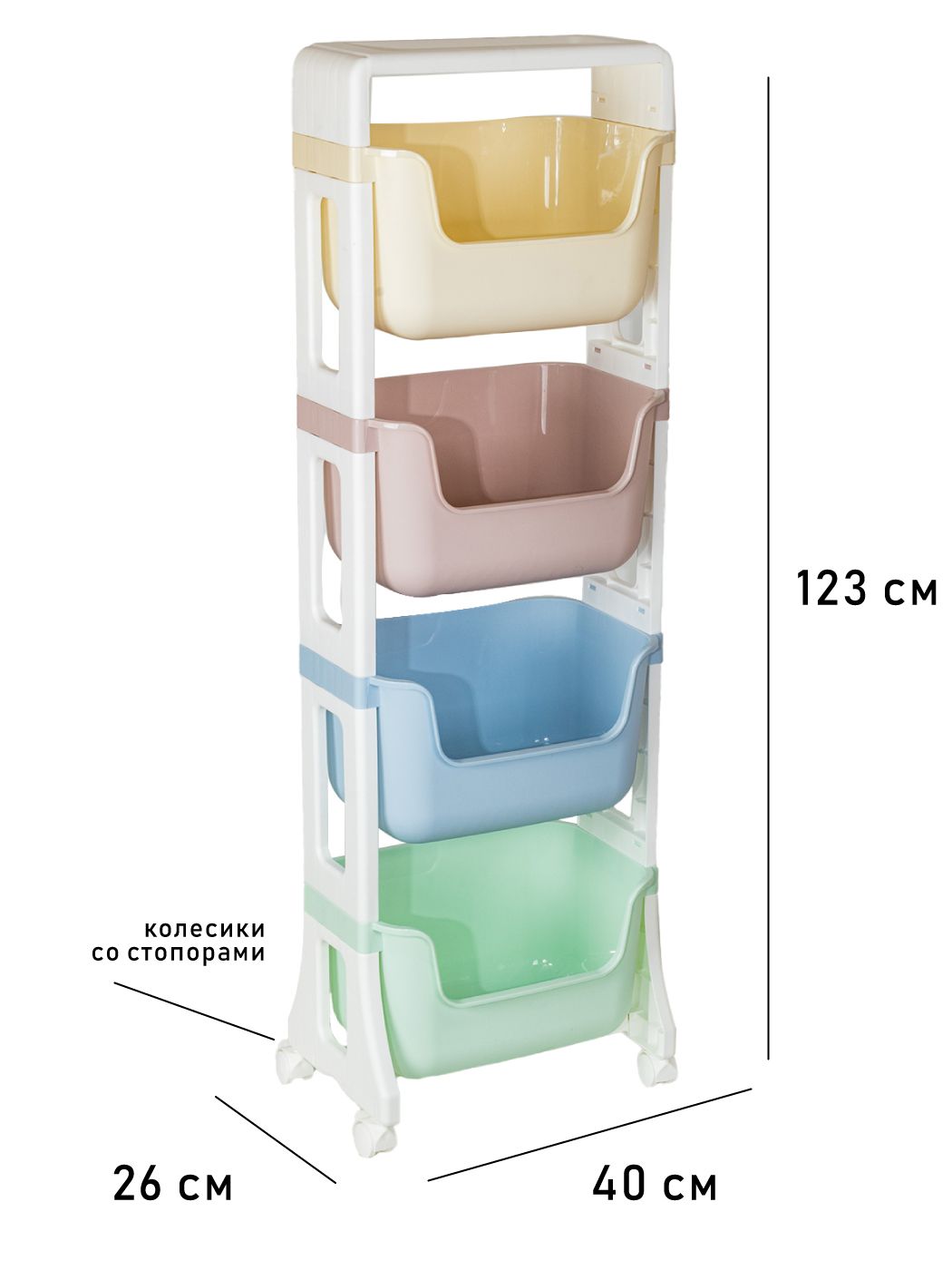 Практичная и многофункциональная универсальная 4-х ярусная пластиковая этажерка SupraКeeping для кухни, ванной, прихожей, спальни или другого помещении - это нестандартное решение для экономии места и компактного хранения принадлежностей. На кухне напольный органайзер на колесиках отлично подойдет для хранения овощей, фруктов и различной кухонной утвари. В детской комнате для хранения игрушек, книг, тетрадей или канцелярских товаров. В гостиной этажерку можно использовать в качестве полки для хранения книг, журналов или рукоделия. В прихожей передвижная полка на колесиках пригодится для компактного хранения обуви, домашних тапочек, шапок, перчаток, шарфов, зонтов и различных мелочей. При использовании в ванной комнате в напольном органайзере удобно размещаются средства гигиены, косметики, банных принадлежности и полотенец. Благодаря лаконичному дизайну и цвету, этажерку - органайзер можно использовать не только дома, но и в салонах красоты, парикмахерских, массажных и косметологических кабинетах, а так же в медицинских центрах. Универсальная полка на колесиках выполнена из качественного пластика, имеет 4 глубоких полки-лотка. Легкое перемещение по помещению обеспечивают надежные колесики со стопором.