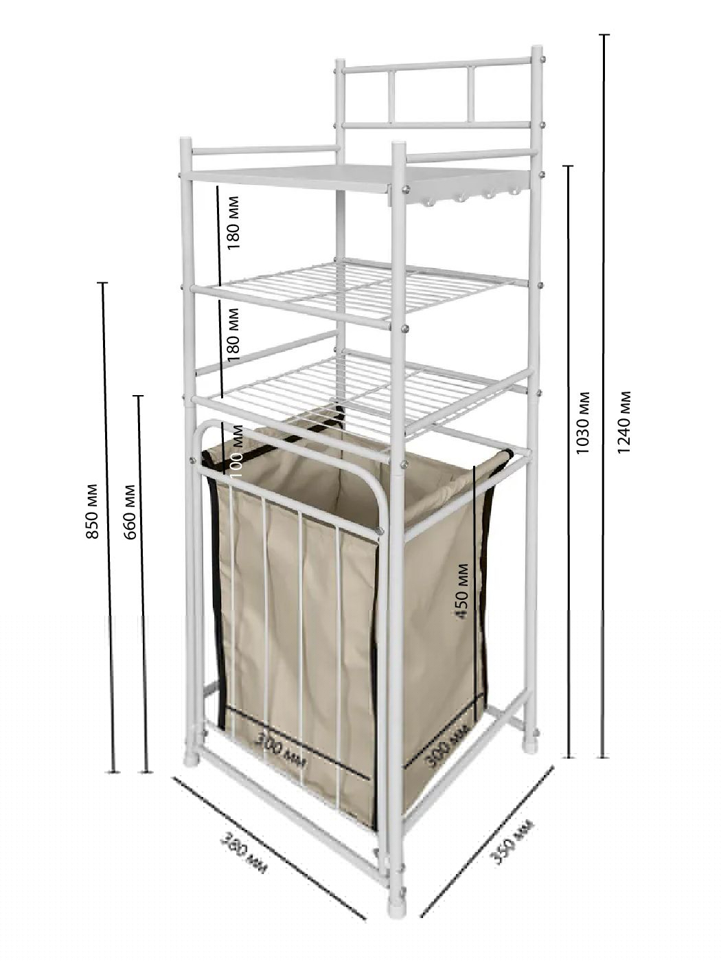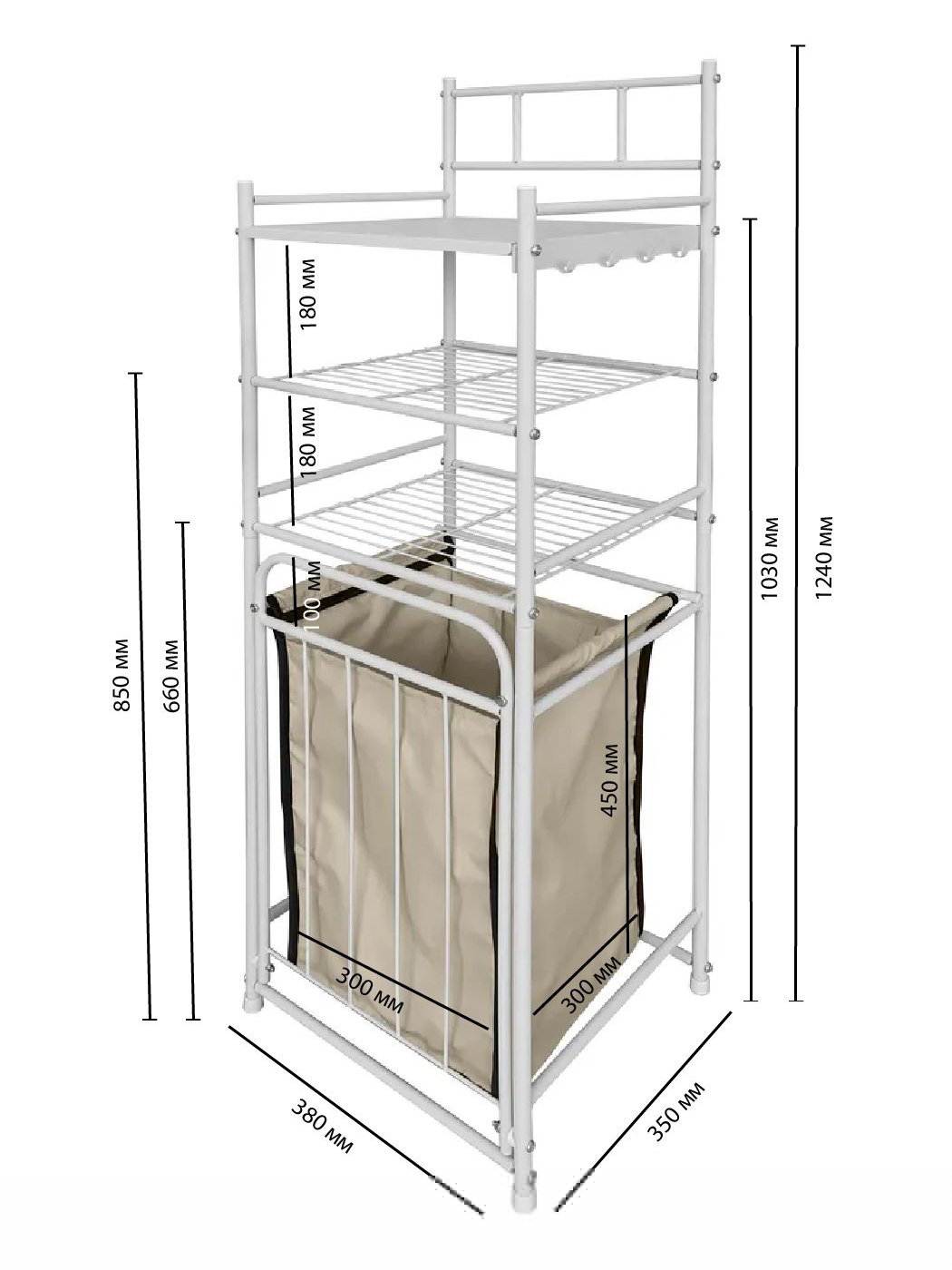 Стеллаж SupraКeeping предназначен для хранения вещей, оборудован интегрированной тканевой корзиной для белья, что помогает эффективно использовать пространство в ванной комнате или гардеробной. Конструкция сборная, мобильная и предусматривает надежную установку без необходимости крепления к стенам. Откидная съемная корзина для белья позволит легко вынимать или сортировать белье, а также обеспечивает легкий уход за текстильными элементами стеллажа. Стеллаж разработан исключительно для бытового применения внутри помещений, в том числе помещений с повышенной влажностью (ванная, кухня).