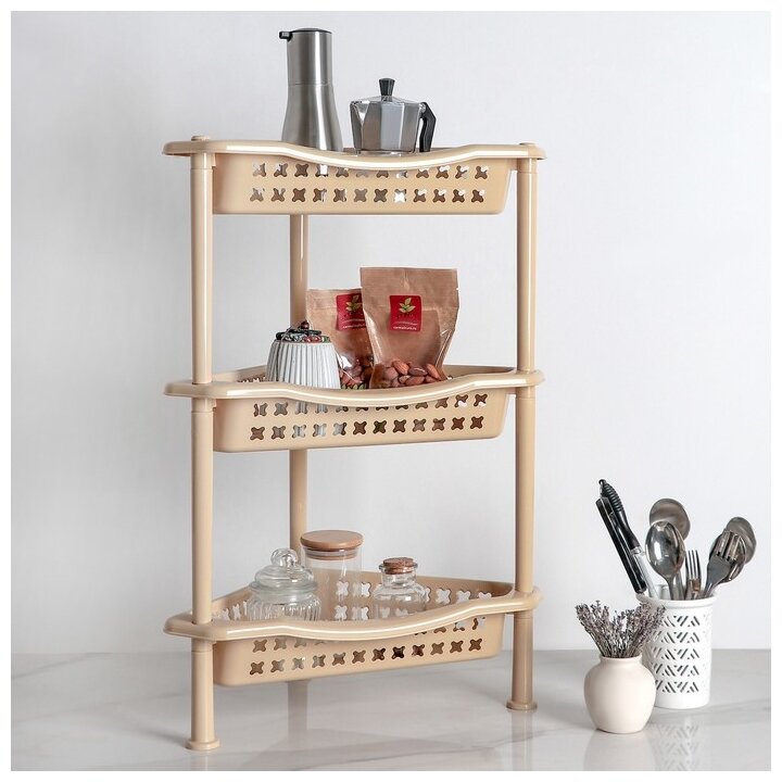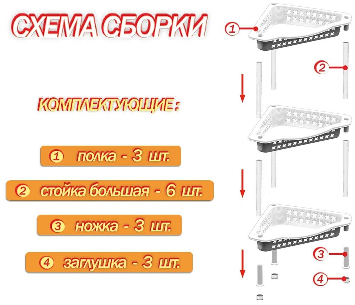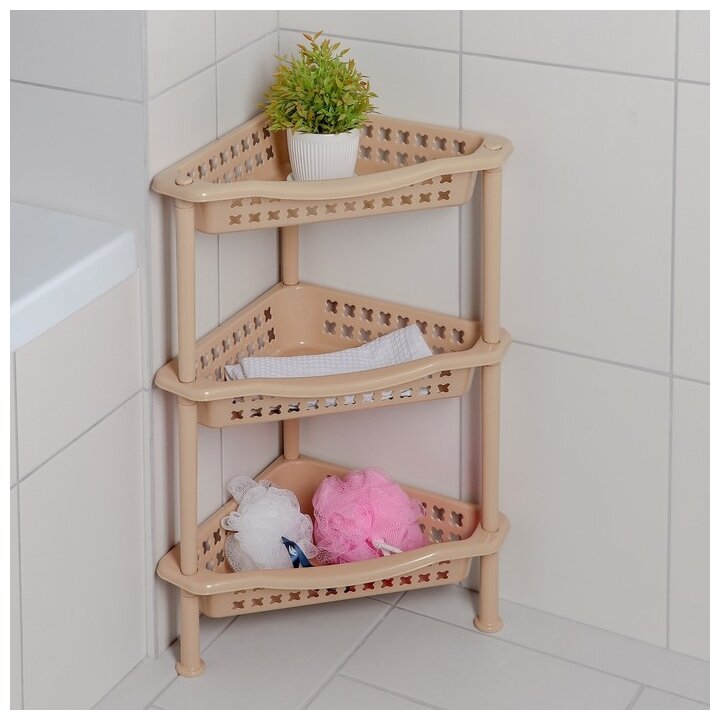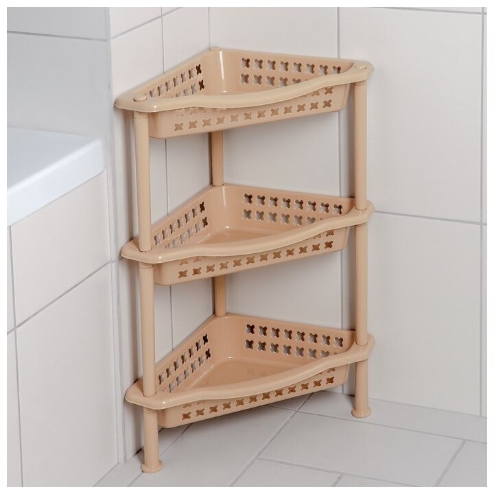 Этажерка угловая обеспечит дополнительное место для хранения необходимых предметов. Этажерка имеет три яруса, что поможет вместить больше предметов. Такая этажерка впишется в любой интерьер и будет удобна при использовании в ванной комнате и на кухне. Этажерка очень легко передвигается, за счет своего легкого веса и не занимает много места. Этажерка легко собирается и устанавливается, инструкция по сборке прилагается.