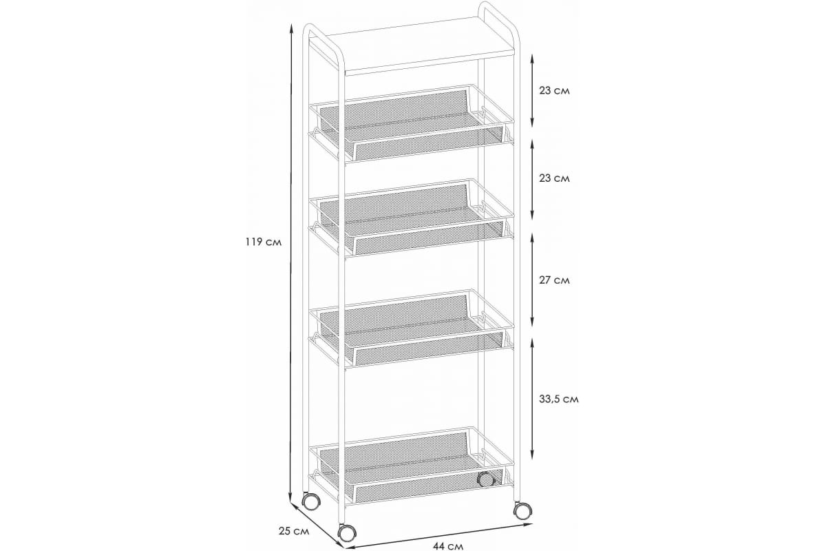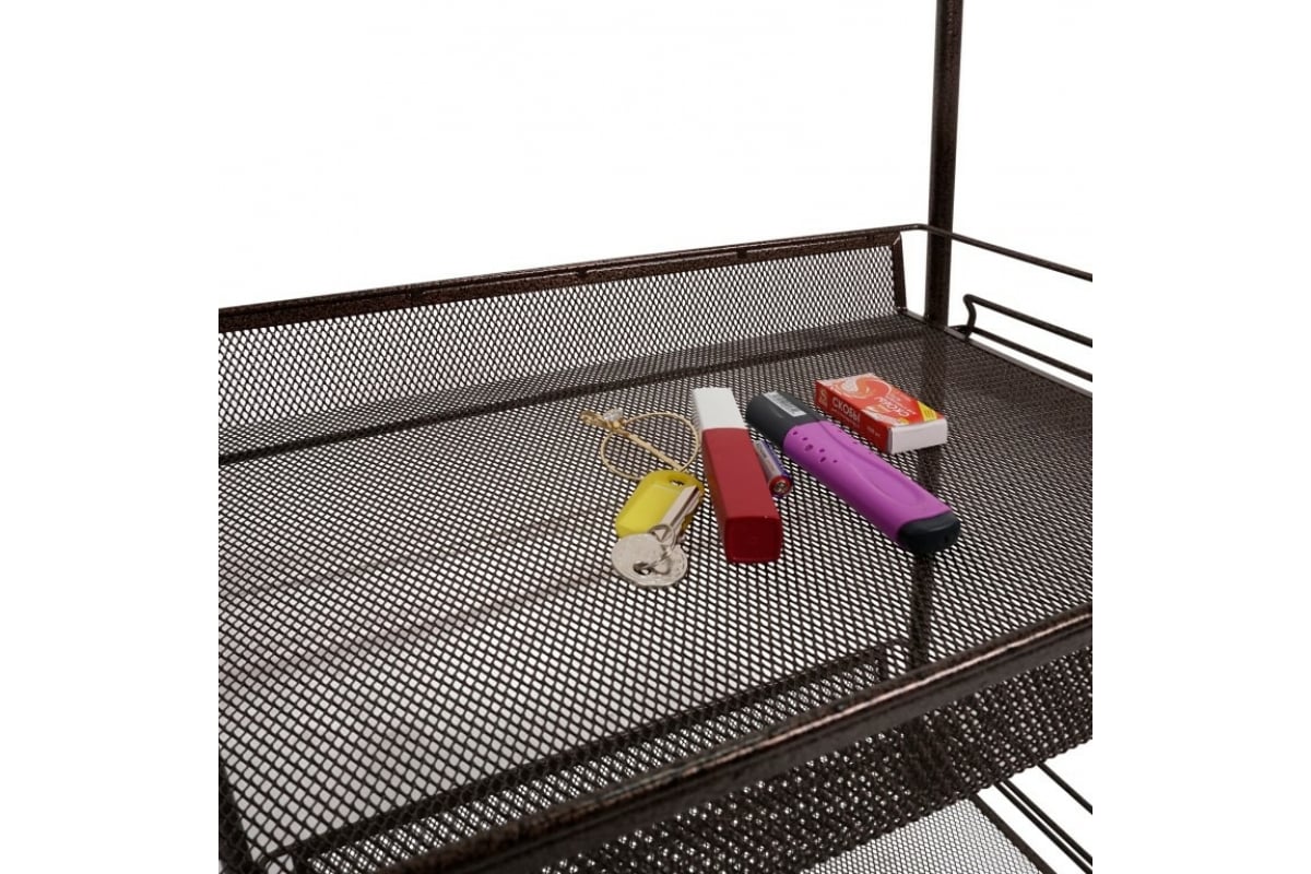 Этажерка имеет открытую конструкцию, за счет чего легко чистится, благодаря чему не требует сложного ухода.