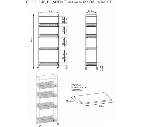Этажерка имеет открытую конструкцию, за счет чего легко чистится, благодаря чему не требует сложного ухода.