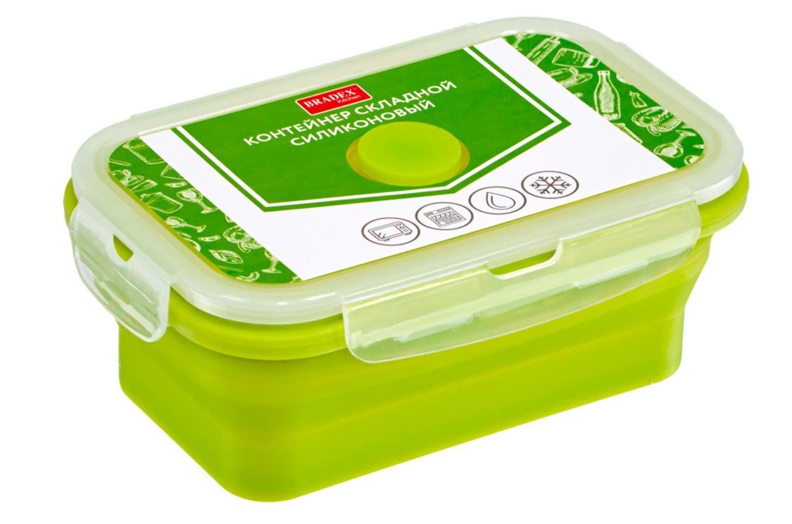 Складной контейнер с клапаном перевернет ваше представление о ланчбоксах! Для изготовления используются современные безопасные материалы, которые не изменяют свойств и вкуса продуктов. Контейнеры подходят для микроволновой печи: просто откройте клапан, не снимая крышку, и обед хорошо прогреется, оставив стенки СВЧ-печи чистыми. После использования вы можете легко сложить силиконовый контейнер и убрать его в сумку - в сложенном виде его высота составляет всего 3 см.