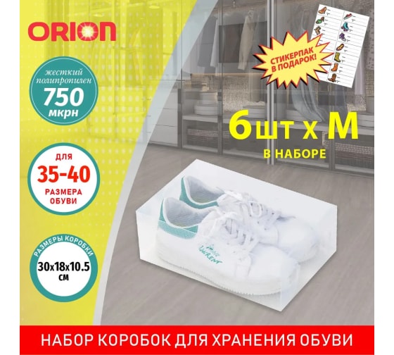 Набор коробок для хранения обуви Orion позволяет эффективно хранить сезонную обувь, грамотно организовать пространство в шкафу или гардеробной. Кроме того, коробки защитят обувь от пыли и плесени.