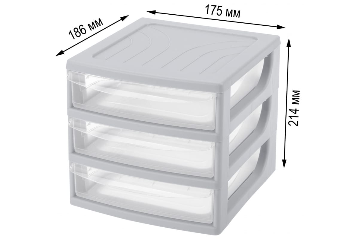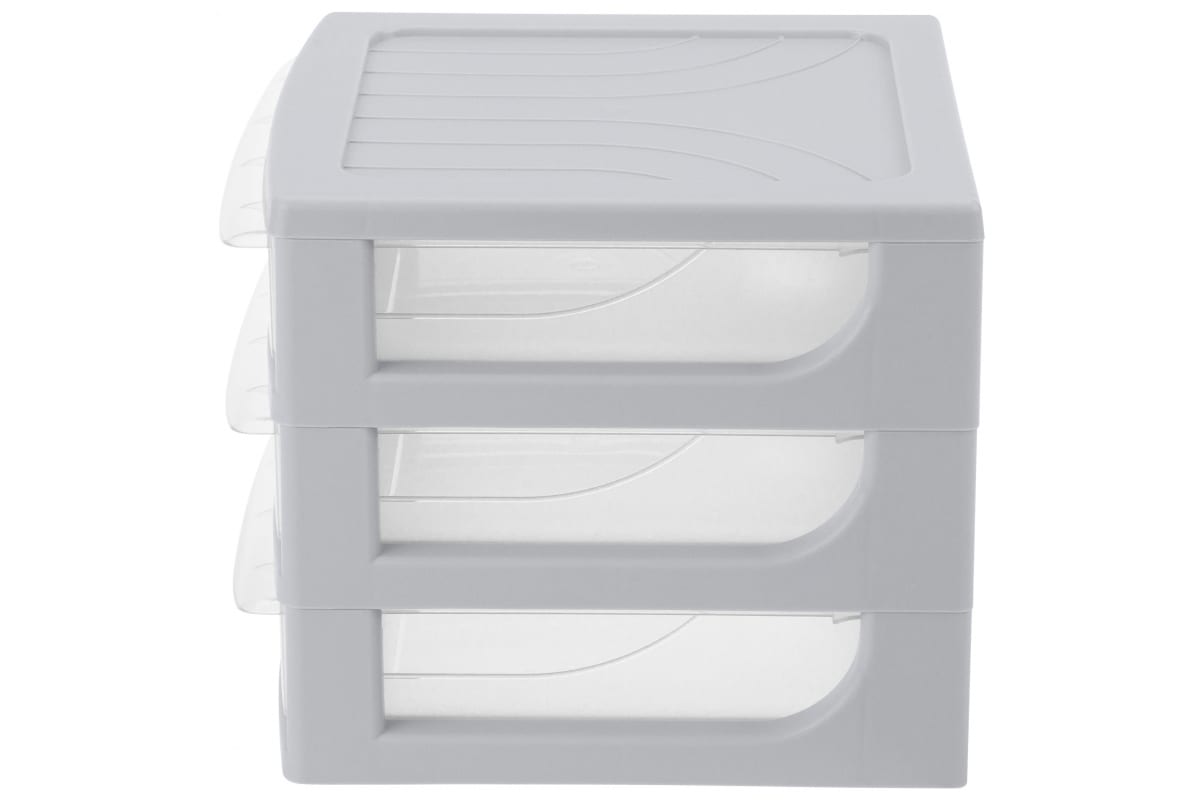Органайзер Econova формат А6, 3 ящика, 175х186х214 мм, светло-серый 433224030 станет удачным приобретением как для дома, так и для офиса. Органайзер подойдёт для организации канцелярских товаров на рабочем столе, игрушек и товаров для творчества в детской, косметики в ванной, швейных принадлежностей, строительных материалов в гараже, специй или полезных мелочей в кухне и др. Лёгкий органайзер удобны в транспортировке. Несколько органайзеров надёжно ставятся один на другой благодаря совпадающей форме дна и углубления на крышке. Ящики органайзера оснащены стопорами, предотвращающими выпадание ящика. Прозрачные стенки позволяют видеть, что хранится внутри каждого из них. Прочный органайзер сделан из безопасного высококачественного полипропилена.