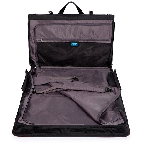 Описание: Стильный и функциональный портплед для костюма из коллекции Piquadro Brief2. Изготовлен из износостойкого нейлона с кожаной отделкой. Имеет одно отделение с фиксирующими ремнями для костюма, внутренний и внешние карманы на молнии, ручки и съемный плечевой ремень для удобной транспортировки.