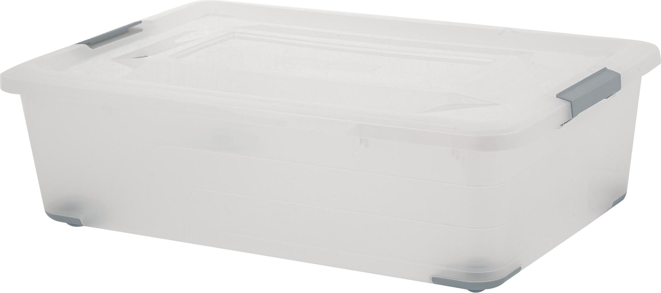 Универсальный ящик для хранения BERGEN 25л подходит для хранения разнообразных мелочей в доме (рукоделия, проводов, детских мелких игрушек и канцелярии), а также для перевозки вещей при переезде. Прозрачный корпус и крышка позволяют видеть содержимое, что удобно для хранения в закрытых гардеробных. Прекрасно штабелируются и устойчиво держатся друг на друге благодаря специальной форме крышки и дна. Надежный и практичный благодаря толстым стенкам. Защищает от загрязнения и пыли содержимое благодаря крышке. Изготовлен из эко-пластика и подходит для контакта с пищей. Надежные замки-защелки позволяют сохранить содержимое ящика. Удобные колесики на дне позволяют легко перемещать ящик. Можно сменить положение колесиков, чтобы ящик двигался либо по его длинной стороне, либо по короткой для удобства помещения его под кровать, в шкаф и т.д.