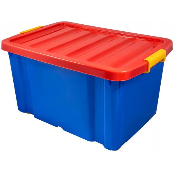 Ящик для игрушек JUMBO, на колесах, ребристая крышка, синий, 60л,