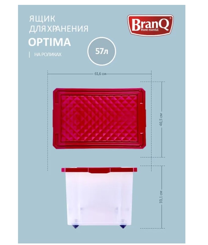 Ящик для хранения BRANQ Optima BQ2576БРД 57л на роликах