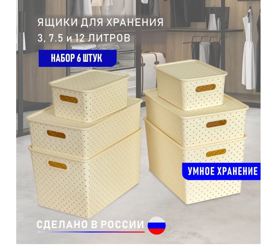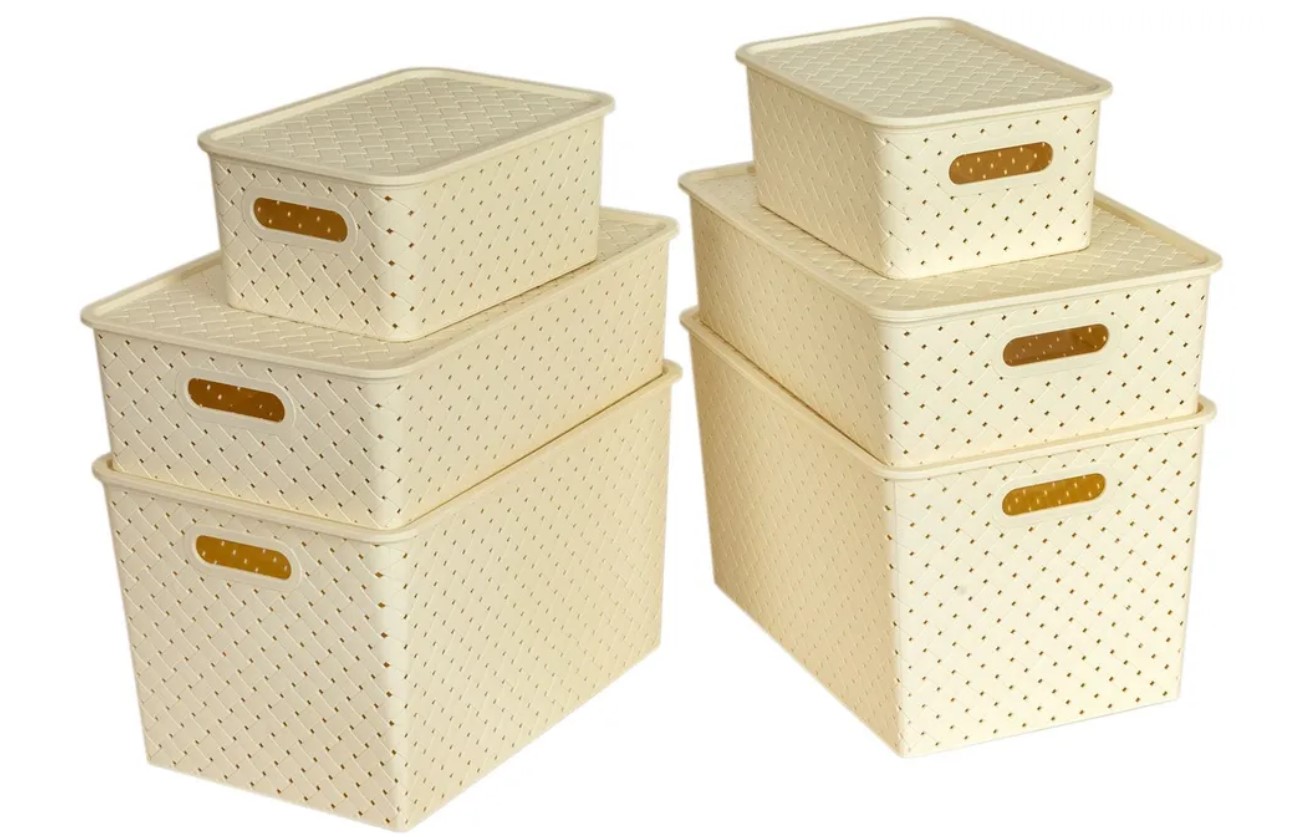 Комплект из 6-х корзин с ручками найдет применение не только дома, например в шкафу, на кухне, балконе, но и в гараже, офисе и на даче.