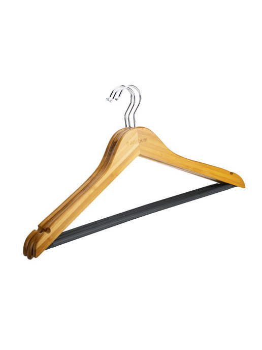 Набор вешалок "BAMBOO" выполнена из натурального, долговечного, экологического материала - бамбука. Поворачивающаяся ручка из качественной стали, позволяет удобно размещать вещи в шкафу. Благодаря оптимальному размеру и выемках на вешалке ваши рубашки, свитера и блузки всегда будут в идеальном состоянии, а естественный цвет бамбука хорошо подойдет для любого гардероба и шкафа.