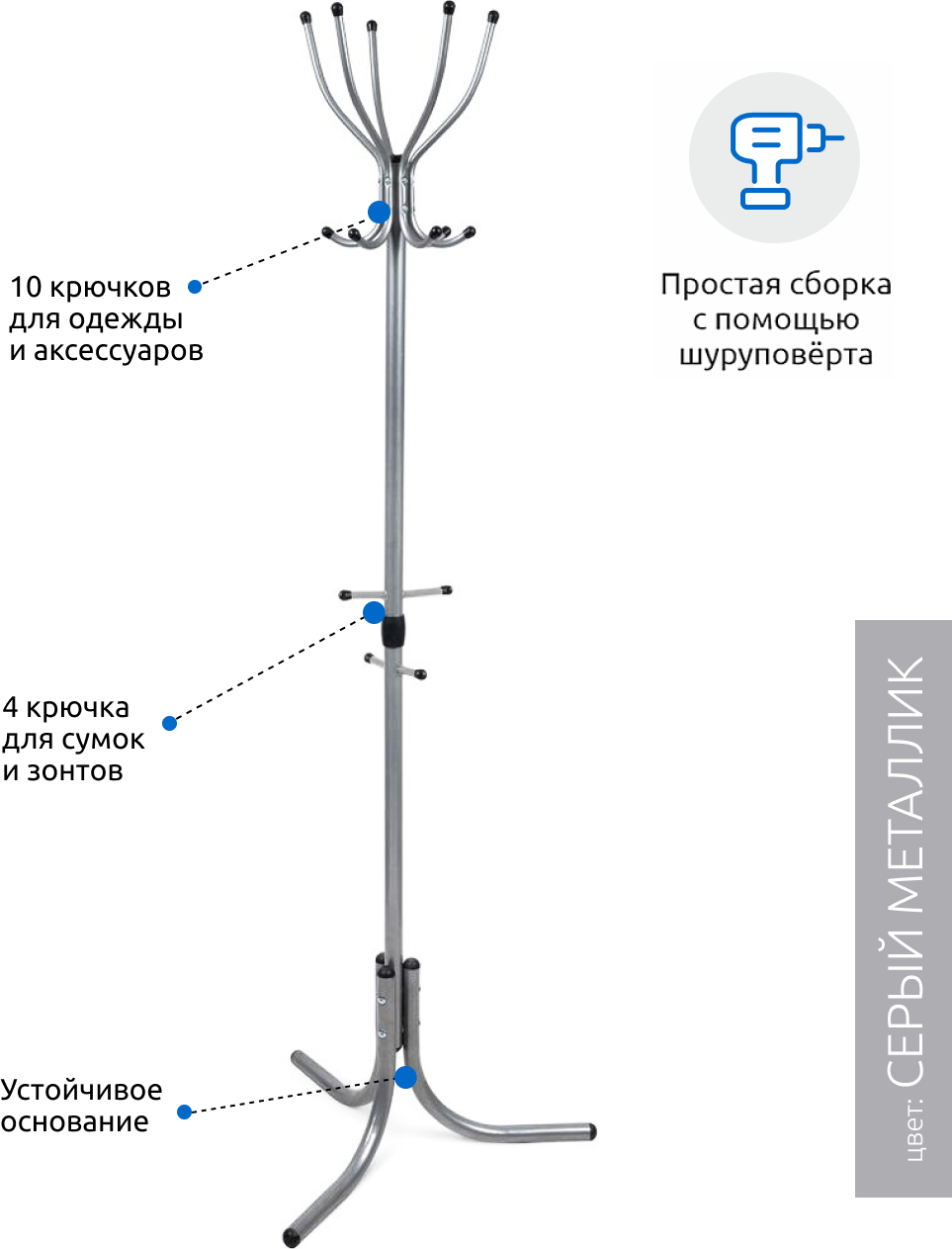 Напольная вешалка Nika Комфорт 5 серебро ВК5/С подойдет для прихожей в квартире, в офисах и т.д.