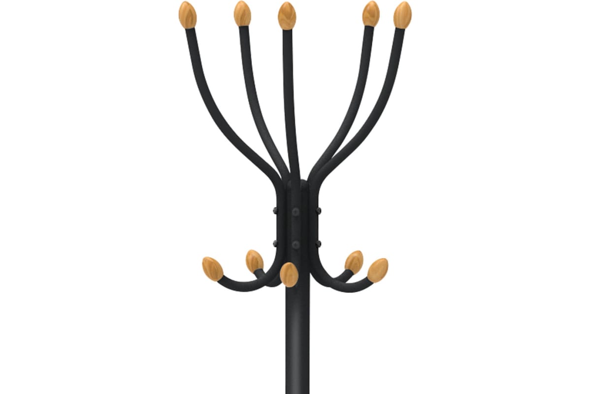 Классическая напольная вешалка с декором из дерева предназначена для размещения одежды и аксессуаров. Надежная металлическая конструкция выдерживает значительную нагрузку. Для комфортного использования предусмотренны дополнительные крючки для сумок и зонтов.