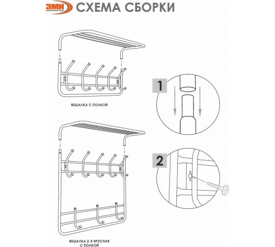 Настенная вешалка ЗМИ с полкой цвет белый ВСП6 предназначена для размещения одежды.