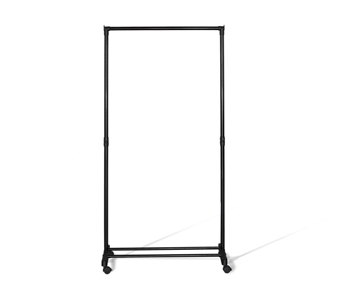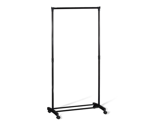 Штанга, стойки и полка выполнены из металлической трубы. Высота вешалки не регулируется. Ширина штанги позволяет вместить до 20 вешалок-плечиков;