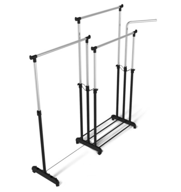- Колеса вращаются на 360 градусов, обеспечивая легкое передвижение вешалки;