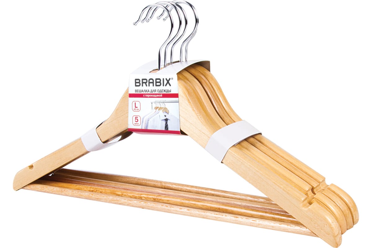 Технические характеристики вешалок-плечиков BRABIX Стандарт 601159 Размер 48-50 Длина 450 мм Количество 5 шт Цвет натуральное дерево Материал дерево Клипсы нет