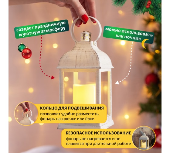 Декоративный фонарь со свечкой Neon-Night 513-054 создает атмосферу тепла и уюта. Источником света является LED светодиод, дающий теплое белое свечение. Такой фонарик станет прекрасным украшением любого интерьера. Питается от 3-х батарей типа ААА.
