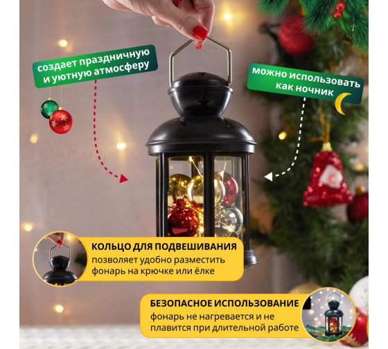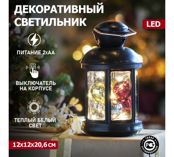 Декоративный фонарь с шариками NEON-NIGHT 12х12х20.6 см 513-061 поможет украсить домашний интерьер или оформить тематическую зону для фотосессии.