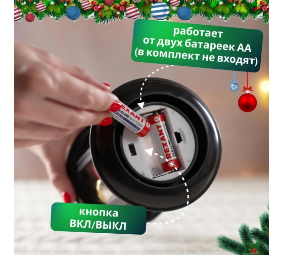 Внутри размещены новогодние шары, которые мягко подсвечиваются светодиодами.
