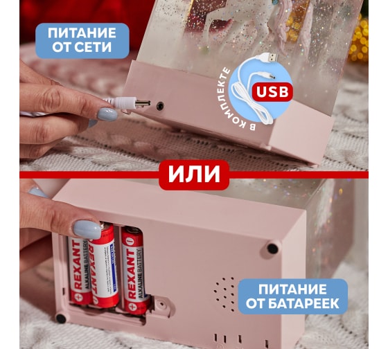 Декоративный светильник NEON-NIGHT Единорог с конфетти и мелодией USB 501-186 с приятным белым свечением придаст уют и привнесет в интерьер тепло, свет и комфорт.