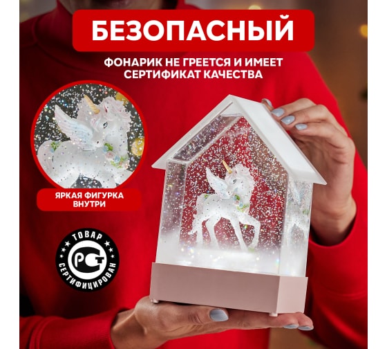 Фонарь наполненспециальной жидкостью и конфетти, которые при включении начинают циркулировать, создавая атмосферу праздника и уюта.