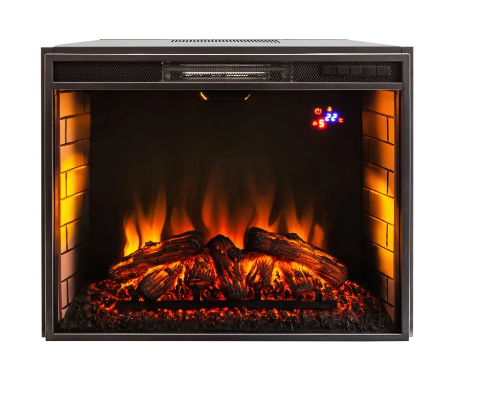 Многофункциональный электрический очаг RealFlame Epsilon 26 S IR с дистанционным управлением и звуковым эффектом потрескивания дров. Данная модель имеет обогреватель мощностью до 1,7 кВт и термостат для поддержания заданной температуры, а также таймер на отключение (до 9 часов).Энергосберегающая светодиодная технология Реалистичные дрова и угли Индикаторы загораются при каждом действии и гаснут через 4 секунды Цифровой индикатор температуры 3 уровня подсветки 5 уровней яркости Индикаторы управляются как с пульта, так и вручную Регулируется подсветка кирпичной кладки