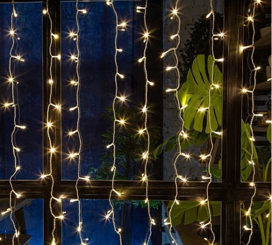 Электрическая гирлянда-занавес Winter Glade Теплый белый свет, 195 ламп CB200 станет замечательным украшением дома в период новогодних и рождественских праздников. Мерцающий свет лампочек подарит сказочное праздничное настроение.