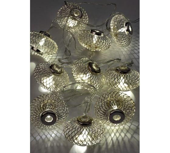 Интерьерная гирлянда из 10 металлических сетчатых серебряных фонариков KOC_GIR-B120 (теплый белый свет). Длина светящейся части 1,8 метров +0,3м. Фонарики украсят детскую, гостиную, спальную, а так же придадут уют и тепло рабочему месту, создадут атмосферу волшебства и помогут удивить гостей!