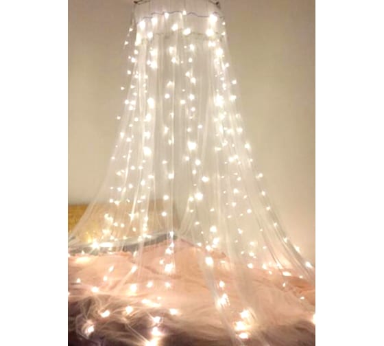 Гирлянду удобно использовать для украшения елки (зеленый провод) или в качестве балдахина. 7 спускающихся нитей длиной по 1,8м, по 18 светодиодов (126LED) на каждой, наполнят комнату теплым белым светом, создадут незабываемую атмосферу праздника. Вы можете использовать гирлянду как украшение дома круглый год. IP20. Работает от сети.