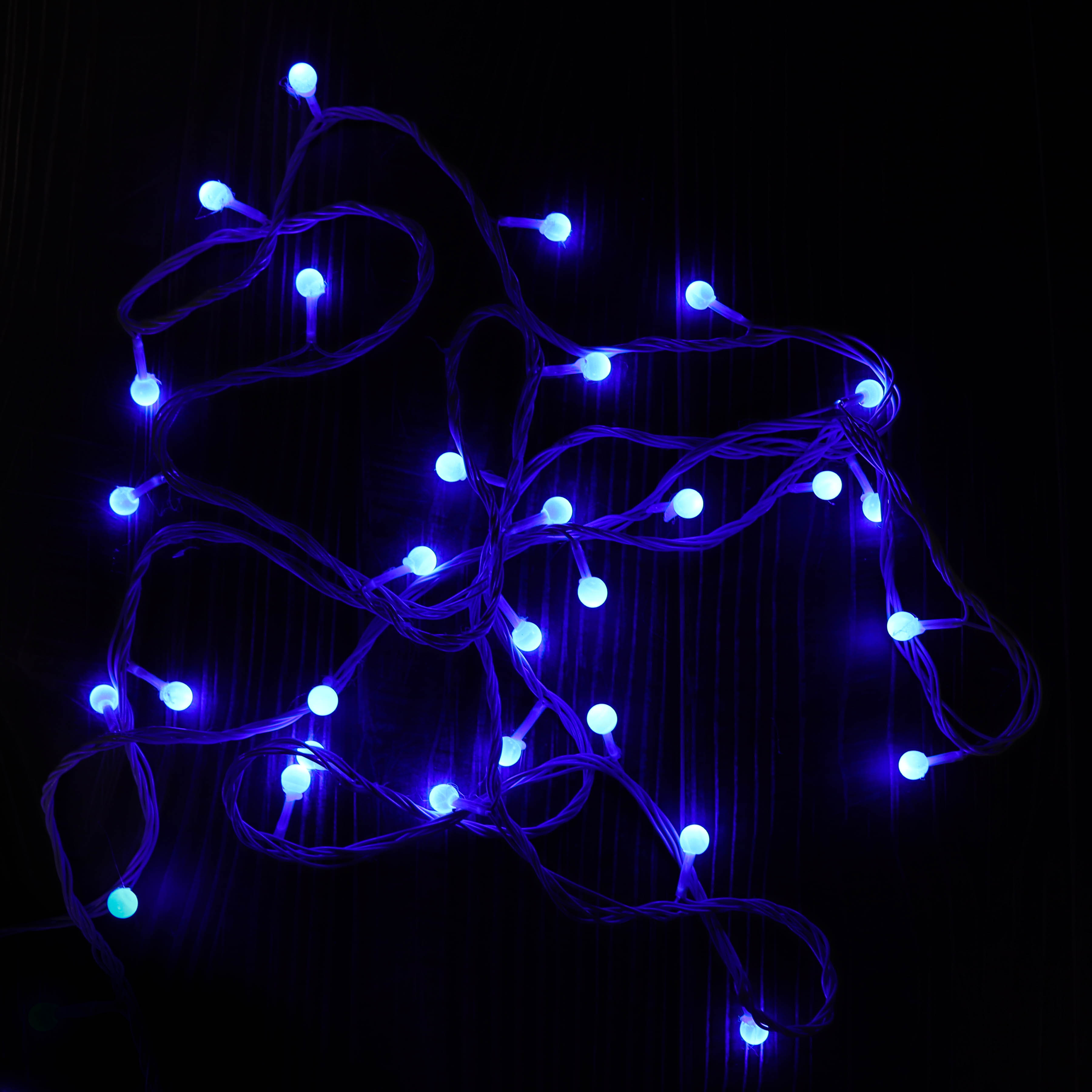 Гирлянда ёлочная, жемчуг, шнур белый, цвет синий