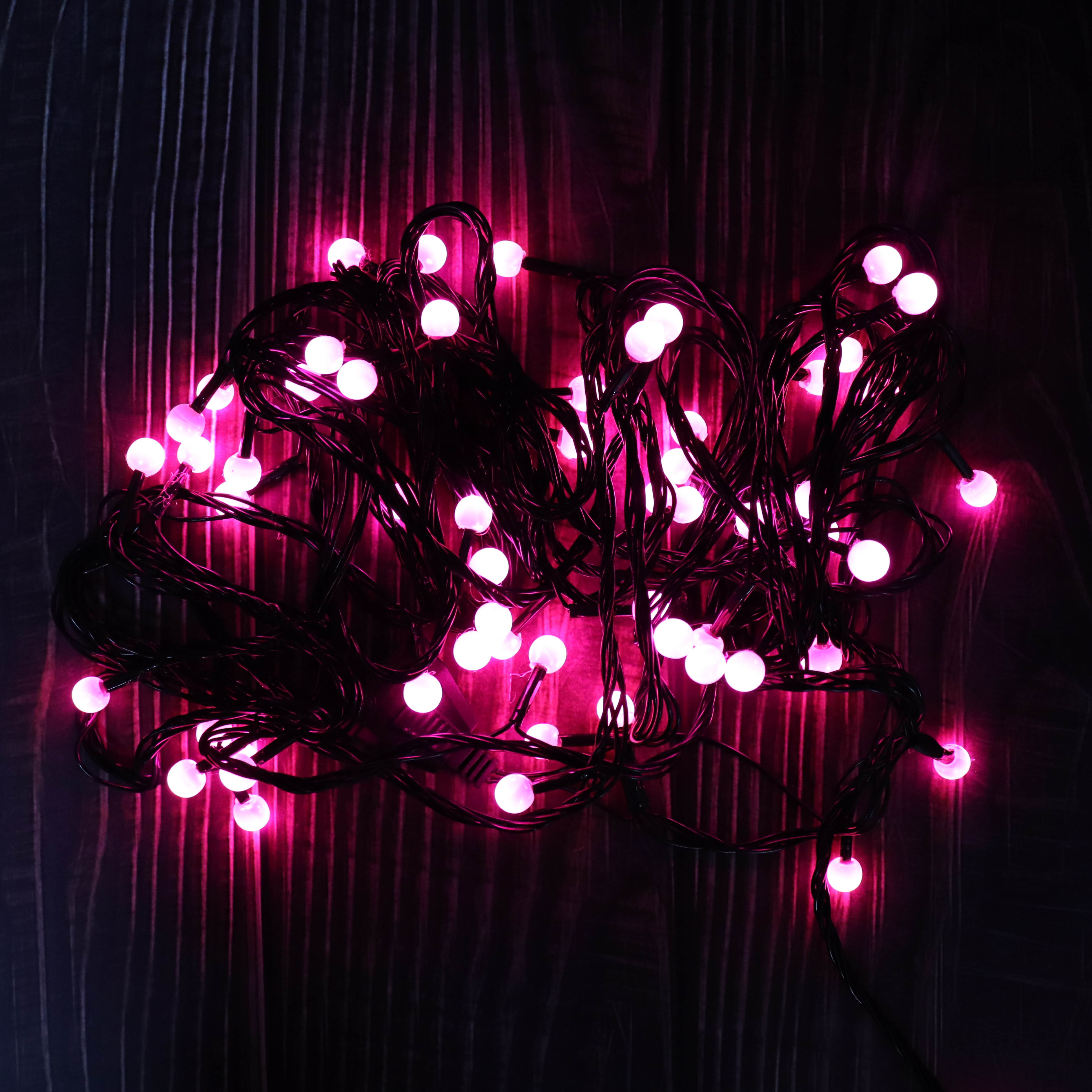 Гирлянда ёлочная, жемчуг, шнур чёрный, розовый