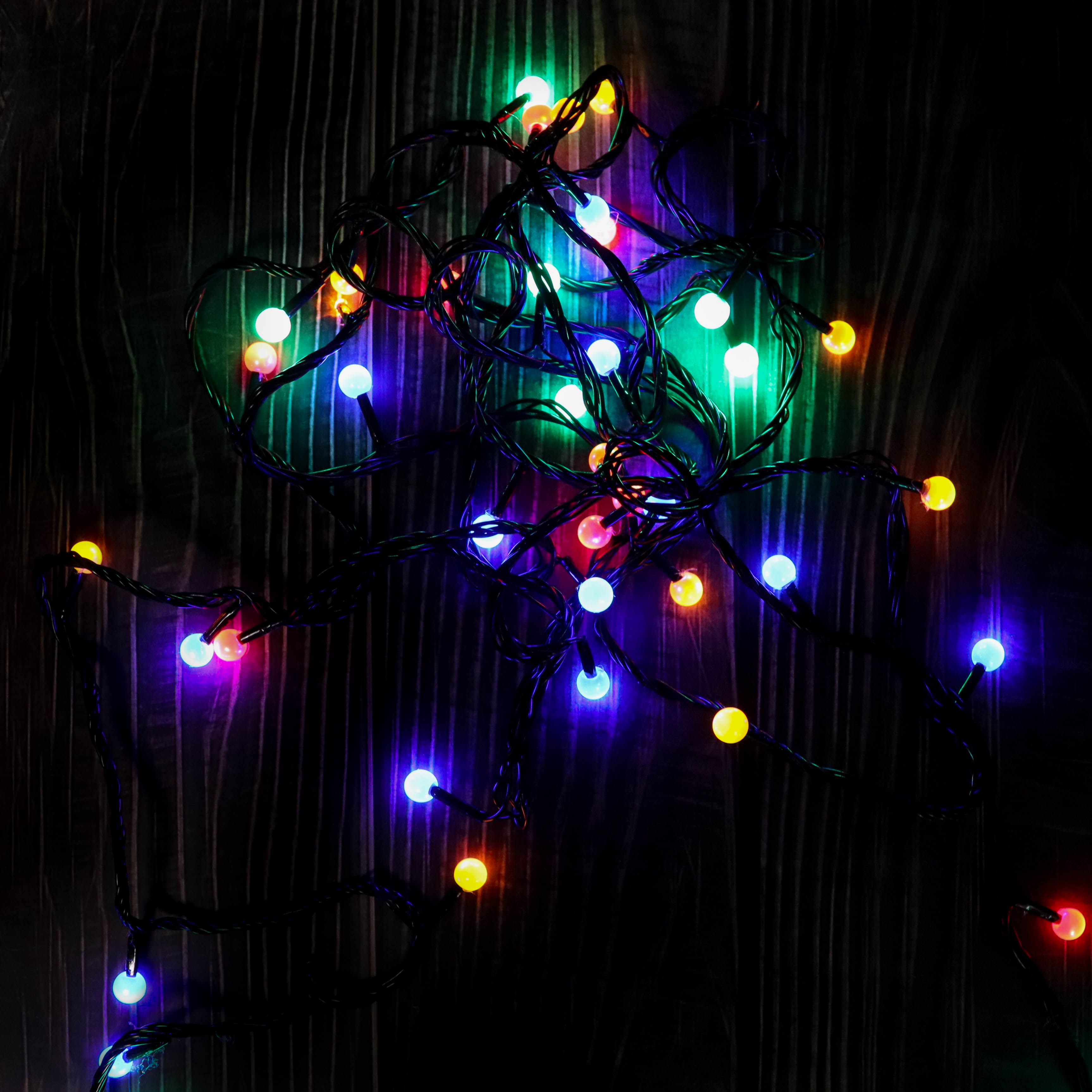 Гирлянда ёлочная, жемчуг, шнур чёрный, цветной