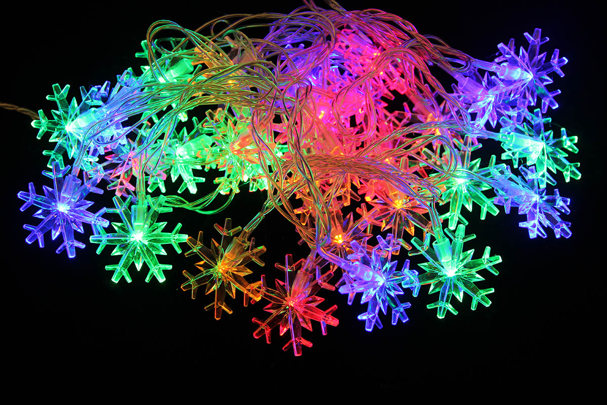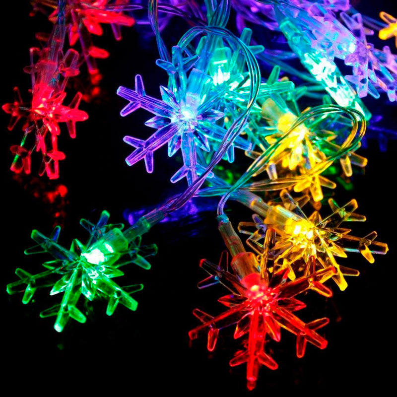 Гирлянда на батарейках, LED, снежинки цветной