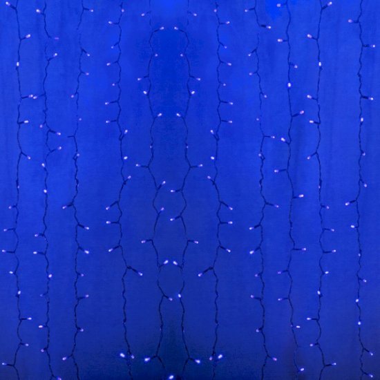 Гирлянда "Светодиодный Дождь" представляет собой гибкий горизонтальный шнур-шину (2м), к которому через определенные промежутки крепятся вертикальные нити (20 шт.) со светодиодными лампами, которые отличаются от «Бахромы» тем, что имеют одинаковую, достаточно значительную длину, часто превышающую протяженность шины. На концах каждой шины есть разъем и штепсель, которые предназначены для последовательного соединения нескольких световых дождей в большой занавес ПЛЕЙ-ЛАЙТ. Используя занавес, можно не только создавать красивые световые занавесы или оформлять различные плоскости, например, фасады домов, окна и т.д., но и украшать объемные объекты. ; Гирлянду, работающую в непрерывном свечении, называют фиксинг, а использующую режим светодинамики – чейзинг. Светодинамические эффекты становятся доступными только при подключении гирлянды к сети через специальный контроллер.; Сегодня в гирляндах источником света служат светодиоды, которые пришли на смену применявшимся ранее лампам накаливания. С полупроводниковыми источниками гирлянда стала более надежной, потребляет меньше энергии, обрела более насыщенное сияние. ; Данная гирлянда имеет синий цвет свечения светодиодов.