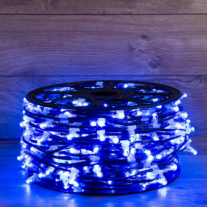 Данная гирлянда поставляется в бухтах по 100 м, представлена в синем цвете свечения светодиодов.