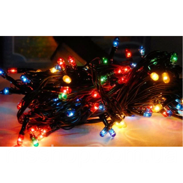 Светодиодная гирлянда 400 LED разноцветная с черным проводом.