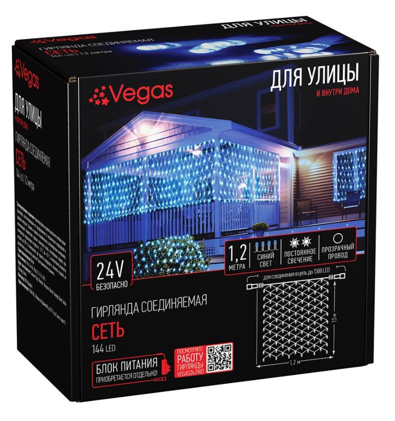 VEGAS 55032 Электрогирлянда Сеть 144 синих LED ламп 1,2*1,5м