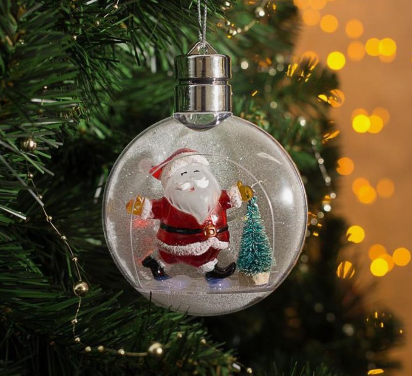 Елочный шар "Дед мороз" 5 LED. от батареек 2032 (в комплекте) Т/БЕЛЫЙ 4357264