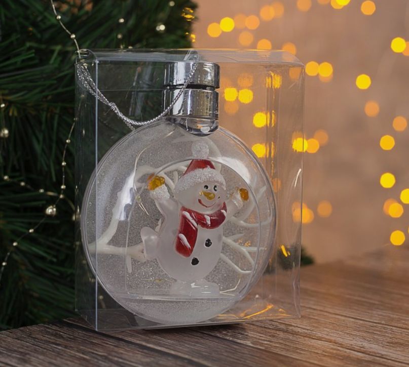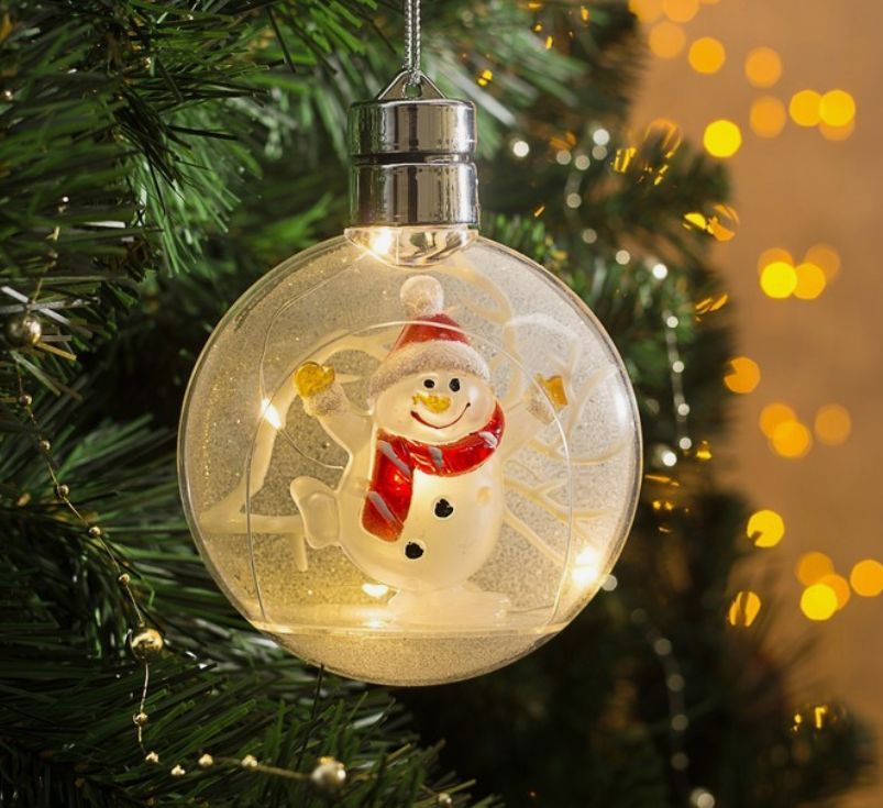 Елочный шар "Снеговик" 5 LED. от батареек 2032 (в комплекте) Т/БЕЛЫЙ 4357263