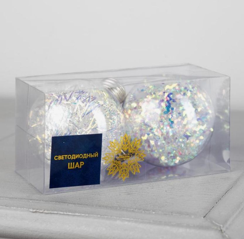 Набор елочных шаров "Блестящий", d=6 см, 1LED, 2 шт, от батареек, RGB 5864386
