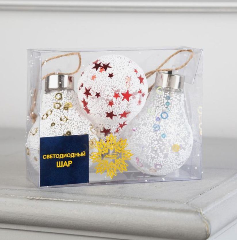 Набор елочных шаров "Лампочки снежные",
